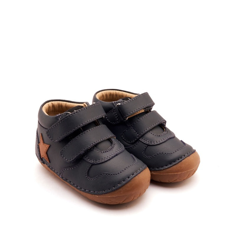 The Old Soles Team Pave Navy is a robust yet flexible first shoe, designed to support pre-walkers and early walkers with comfort, protection, and natural movement. Featuring a reinforced toe bumper and an all-round raised sole, these shoes provide extra durability while keeping little feet safe as they explore.