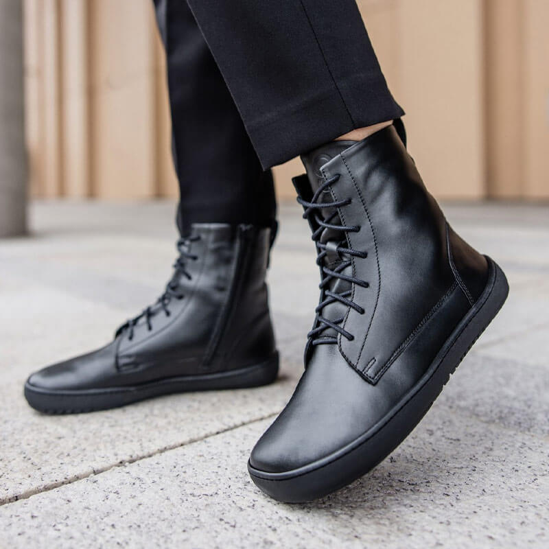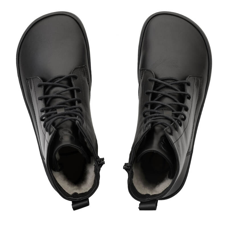 Crafted from smooth leather, the Cozy Boots feature a sheeps wool lining for superior warmth and comfort in cold weather. Built with a zero-drop, thin, and flexible rubber sole, the boots have a 4mm sole thickness and 4mm tread, offering excellent grip and stability on icy or slippery surfaces.