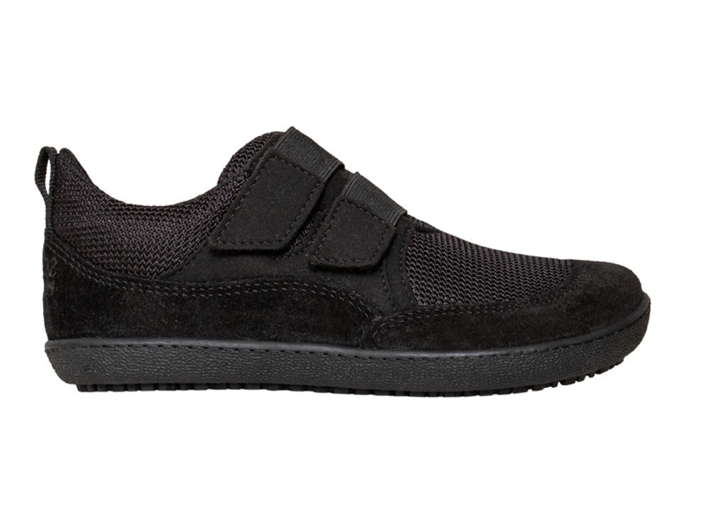 The Sole Runner Kids' Puck Black is a simple, practical, and barefoot-friendly trainer designed for active kids who need comfort, flexibility, and room to move naturally. With its wide fit design, the Puck provides ample space for natural toe splay, supporting healthy foot development as kids grow and play.